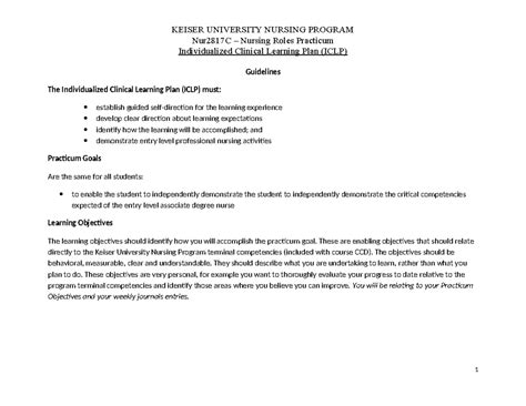 Read Individualized Clinical Learning Plan Examples Reader